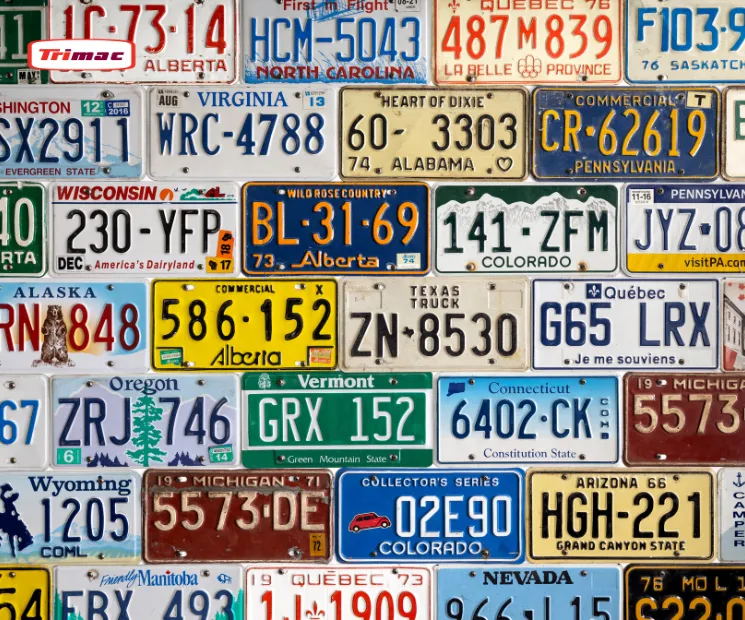 Mur de plaques d’immatriculation : Un hommage émouvant à la vaste main-d’œuvre de Trimac en Amérique du Nord se manifeste à travers une installation artistique qui inclut des plaques d’immatriculation canadiennes et américaines des États et provinces où Trimac opère.