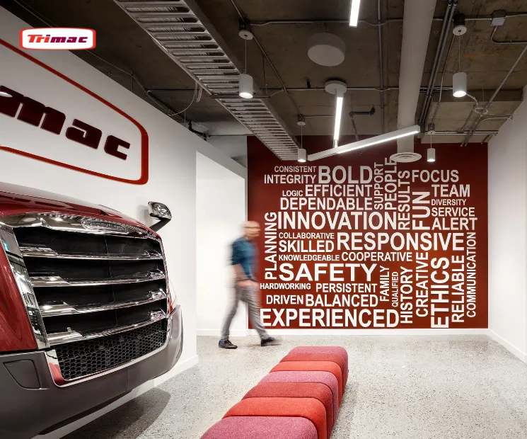 Mur de mots : Exprimant les émotions partagées par l’équipe de Trimac, un mur de mots accueillant décore l’entrée principale du bureau. Ce récit captivant est également intégré à travers le bureau, mettant en évidence l’influence de la main-d’œuvre de Trimac dans la création de son héritage.