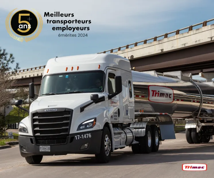 Nous sommes fiers d’annoncer que Trimac a été distingué comme Employeur de flotte de distinction par Trucking HR Canada pour la sixième année consécutive. Cette prestigieuse reconnaissance souligne l’engagement de Trimac à maintenir un environnement de travail qui favorise le développement des compétences, l’engagement des employés et des pratiques innovantes en matière de ressources humaines, tout en démontrant un effort continu pour surpasser les normes de l’industrie en termes de satisfaction des employés, de culture d’entreprise et de durabilité.