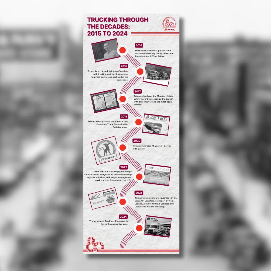 This month, Trimac proudly marks its 80th anniversary, a milestone that celebrates eight decades of connecting communities, delivering essential goods and living our motto of Service with Safety.